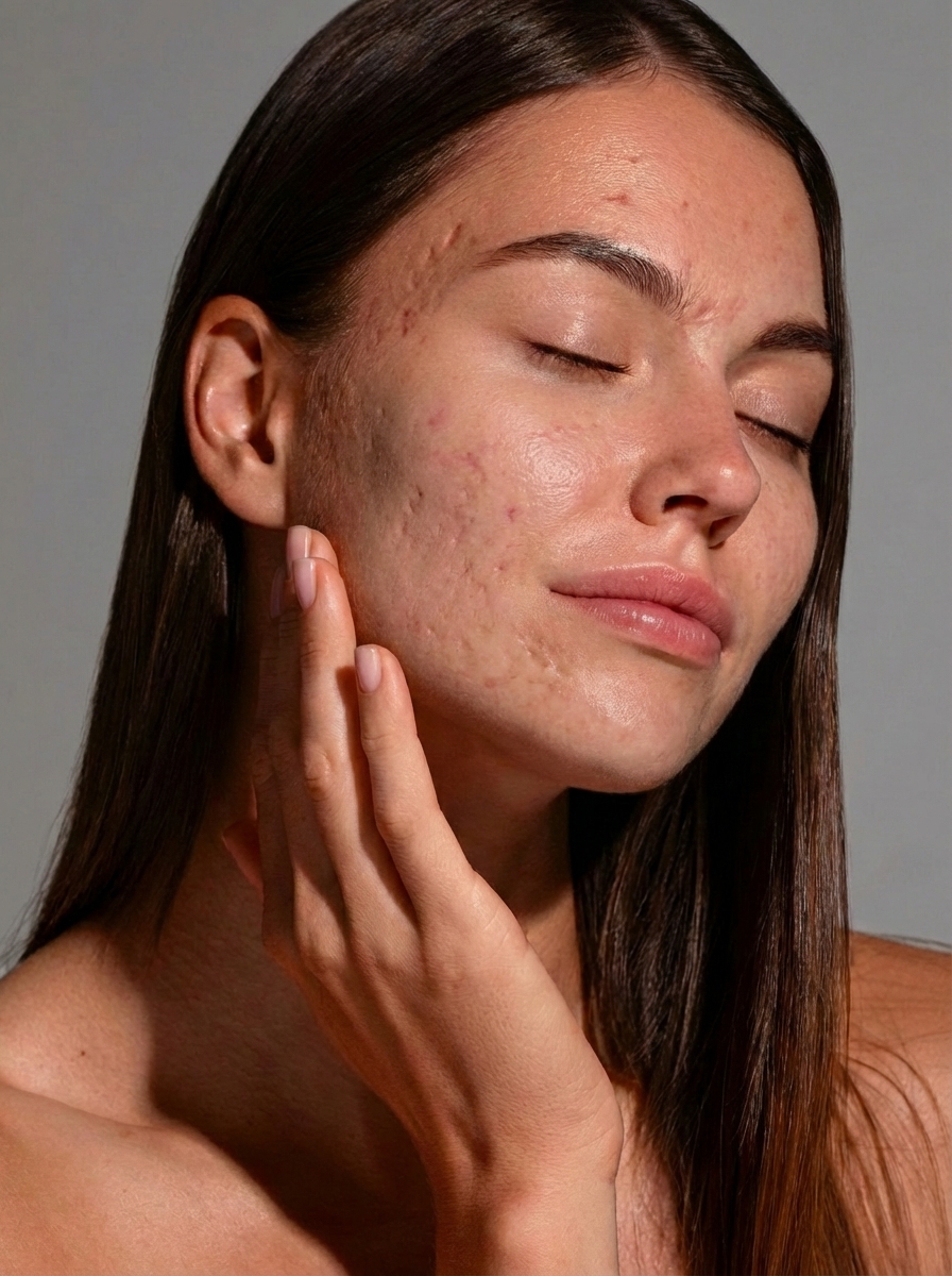 Acne scarring is a common skin concern that develops when breakouts heal unevenly, leaving behind textural changes, indentations, or irregular skin surfaces. It can appear as shallow or deep depressions, uneven texture, or areas of altered skin structure, often caused by inflammation, delayed healing, and collagen disruption.
