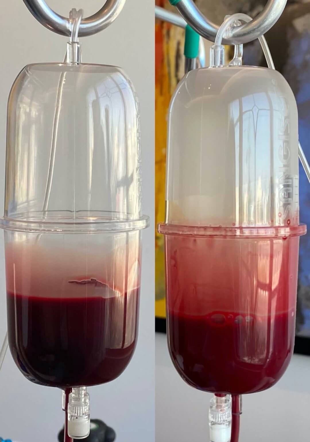 - 100 ml of blood is drawn from the client via a sterilized closed system with no human interference.